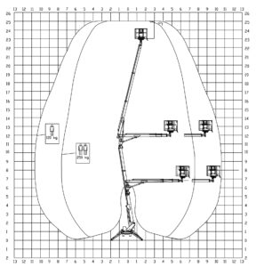 The double articulating telescopic booms improves the aerial agility and offers stable working positions. The low centre of gravity gives the machine excellent stability when driving on uneven ground and slopes.