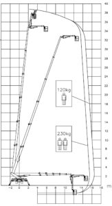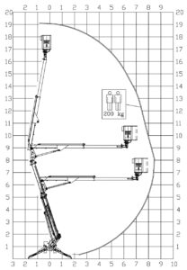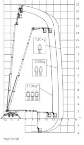 Working areas with 120, 230 and 330 kg SWL are constantly monitored by automatic “area manager” safety system.