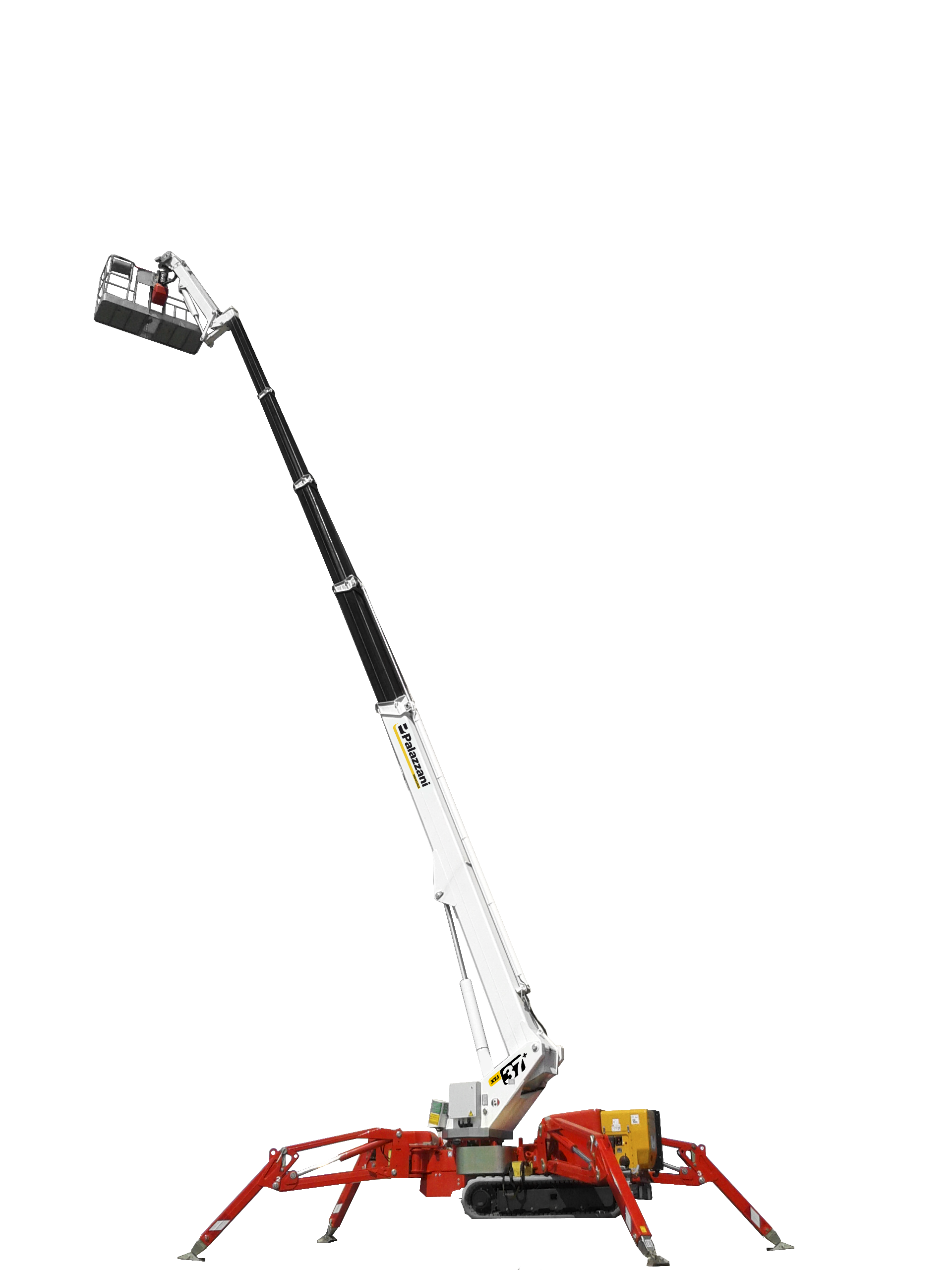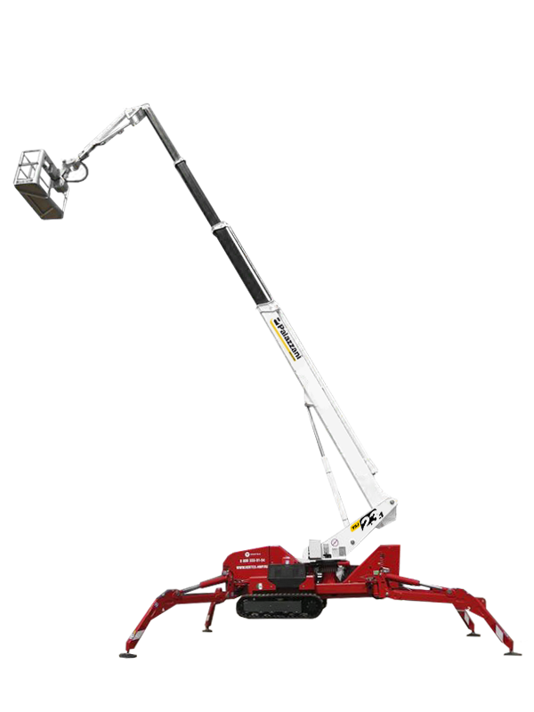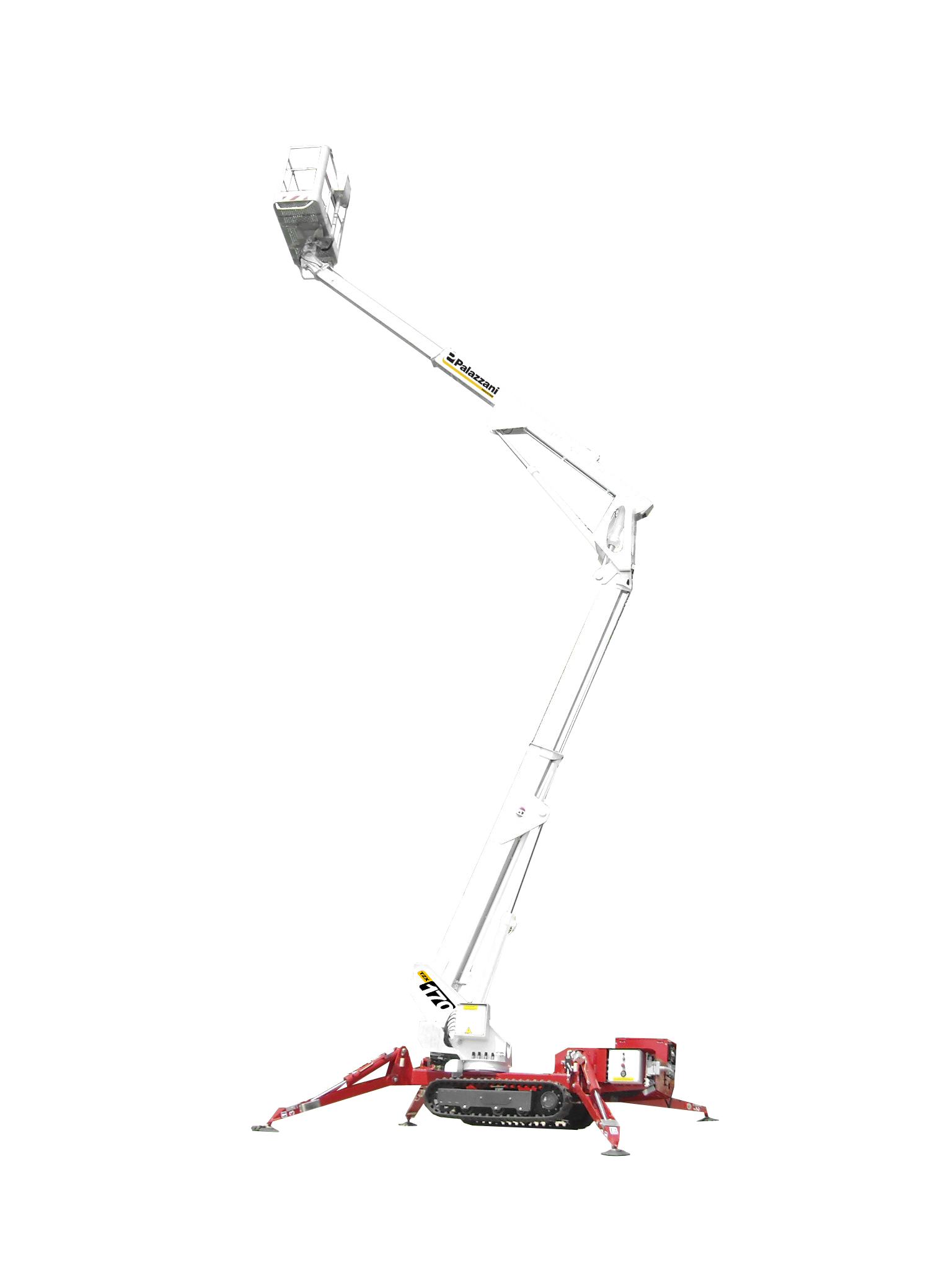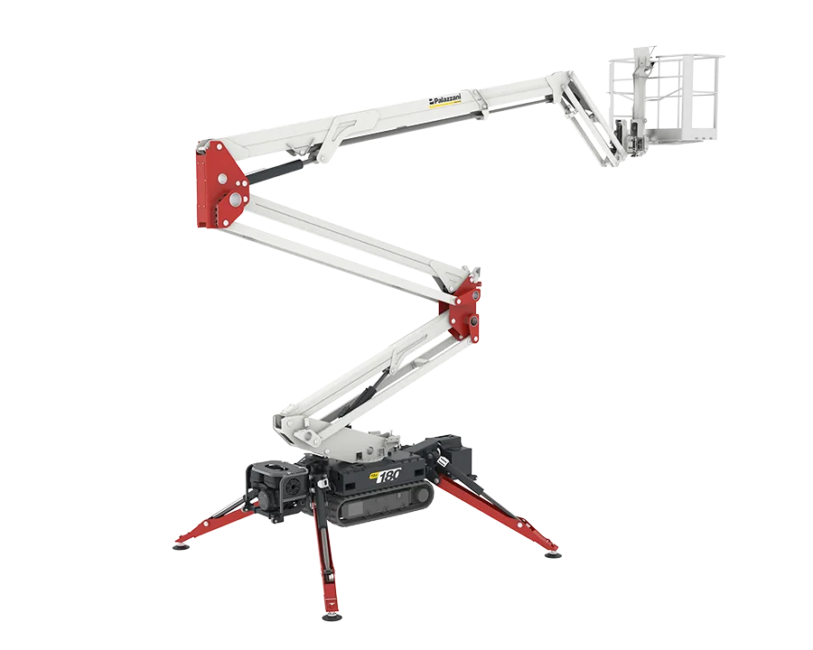 The Palazzani TZJ 180 is a compact and versatile spider lift designed for excellent performance in confined or hard-to-reach work areas. Offering an impressive 18-metre working height and an outreach of about 8 metres, it provides a stable 230-kg basket capacity suitable for two operators and their tools. Its double-articulated telescopic boom with jib delivers smooth, precise positioning, while the 360-degree turret rotation enhances maneuverability around obstacles. The extendable rubber tracks allow the machine to pass through narrow entrances and maintain strong stability on uneven terrain. With intuitive electro-hydraulic controls and a user-friendly display, the TZJ 180 combines efficiency, safety, and flexibility, making it highly suitable for rental fleets and a wide range of professional applications
