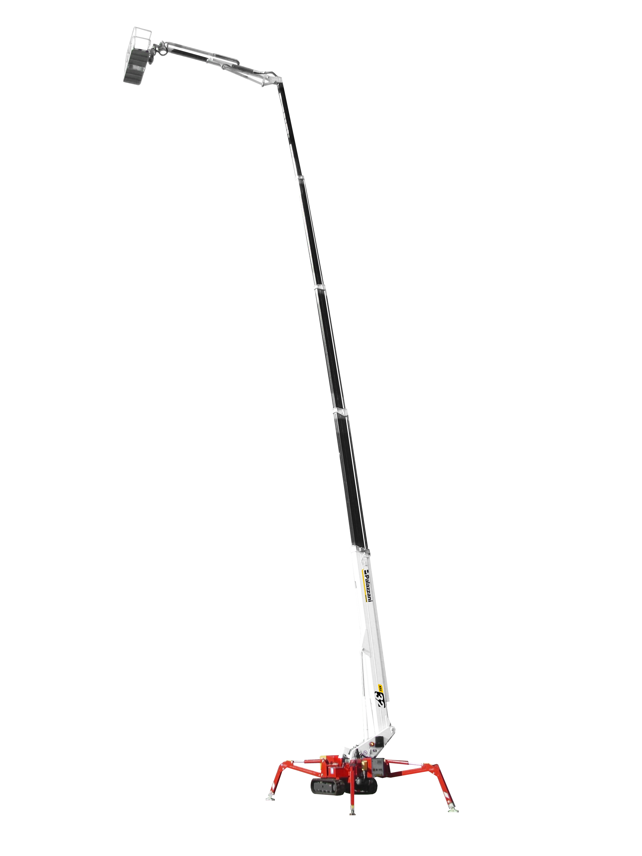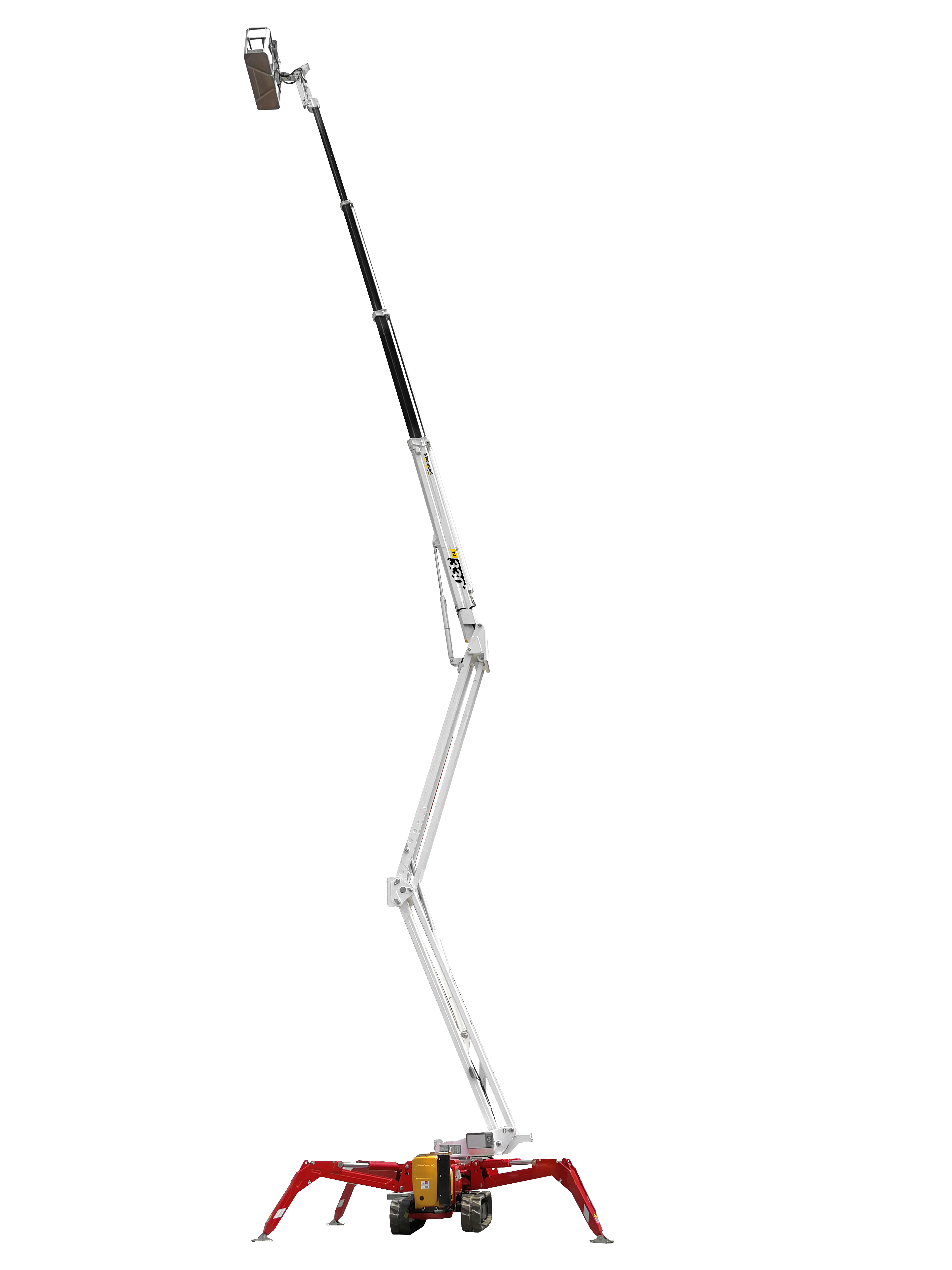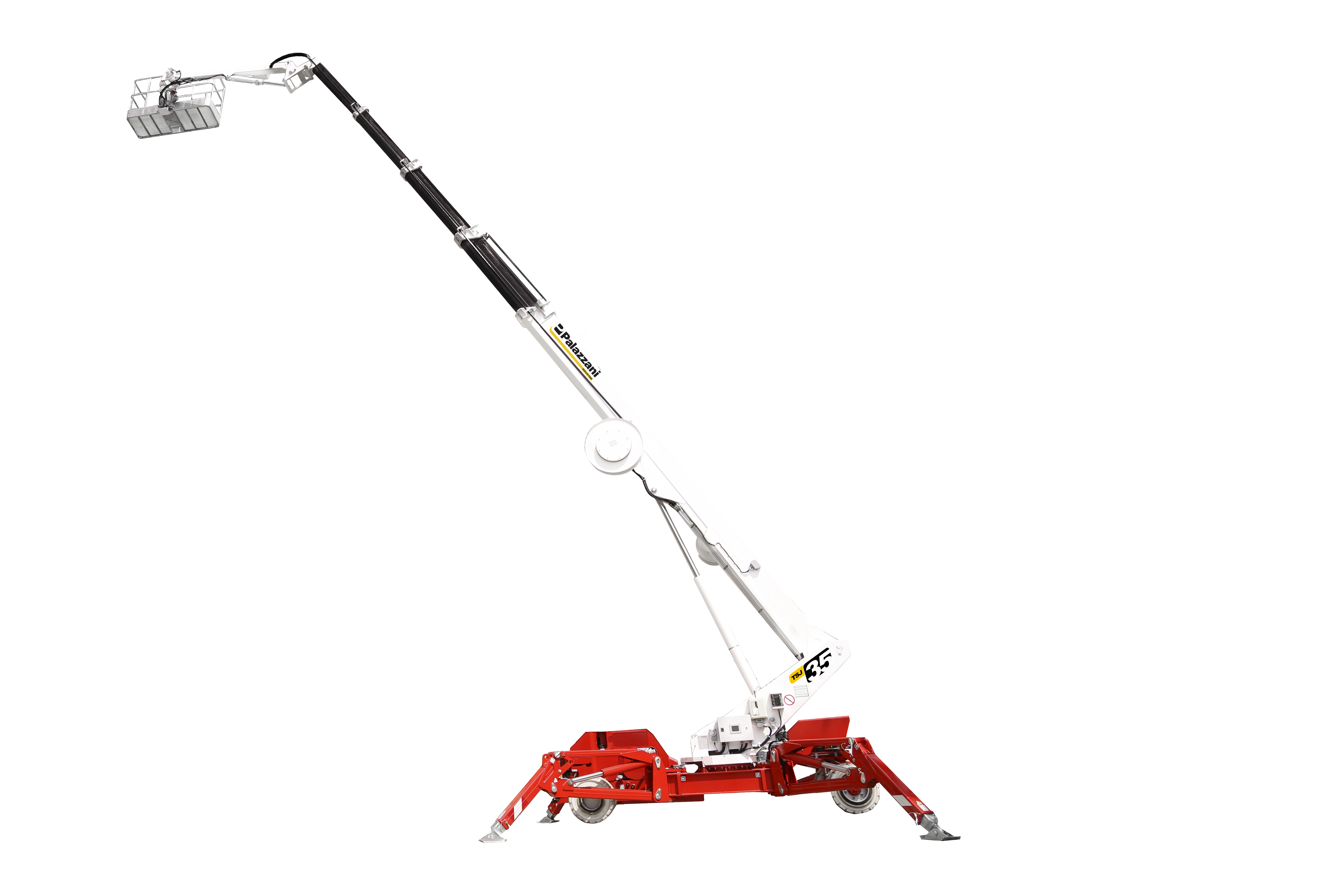 On tracks, or wheels, is the classic spider platform, light and compact, with 5 sections telescopic boom and upper articulated jib.
