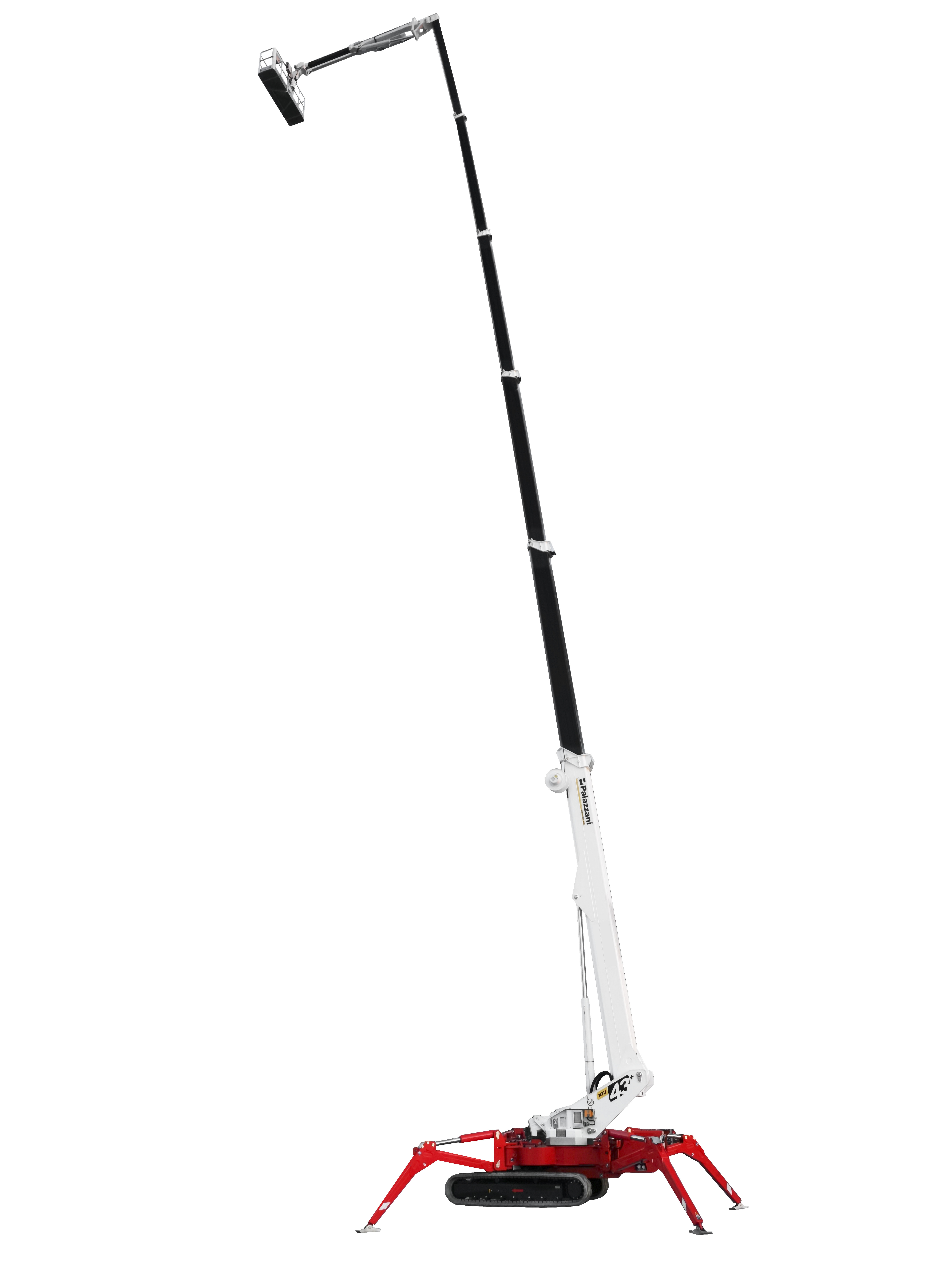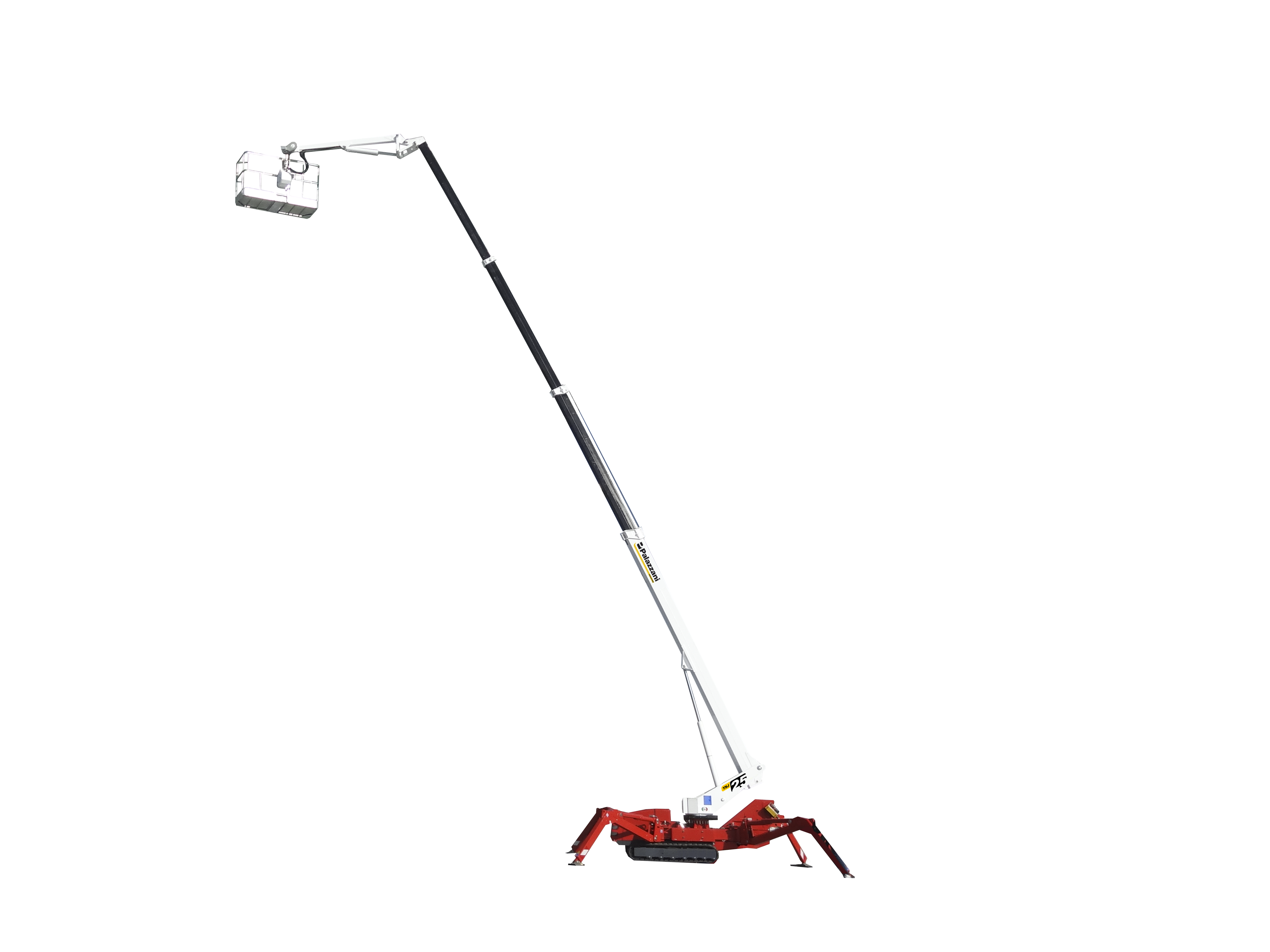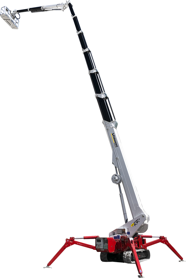 On tracks, or wheels, is the classic spider platform, light and compact, with 5 sections telescopic boom and upper articulated jib.