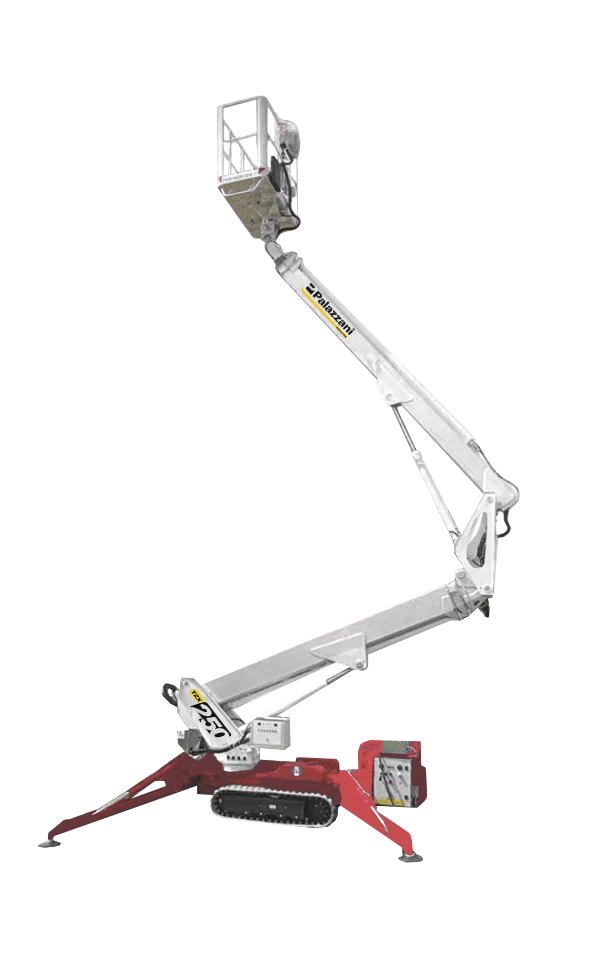 The Palazzani TZJ 160 is a highly compact and agile 16-metre “spider” aerial lift designed for versatility in tight or restricted job sites. With a working height of 16 m and an outreach of 7.6 m, it offers a generous basket capacity of 230 kg, making it suitable for two operators plus tools. Its articulated double-telescopic boom with jib enables precise maneuvering, while electro-hydraulic controls from either the ground or the basket ensure smooth operation. The TZJ 160 features extendable rubber tracks (775–955 mm) that allow it to navigate through standard doors, narrow gates, and uneven terrain confidently. An integrated inclinometer provides stability feedback during movement, and its compact footprint and light weight enhance transportability. Power options include a petrol engine, with plans for more eco-friendly electric or hybrid versions